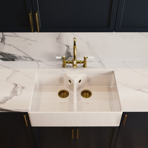 Wodar 90mm kitchen strainer waste with no overflow plate - Brushed Brass